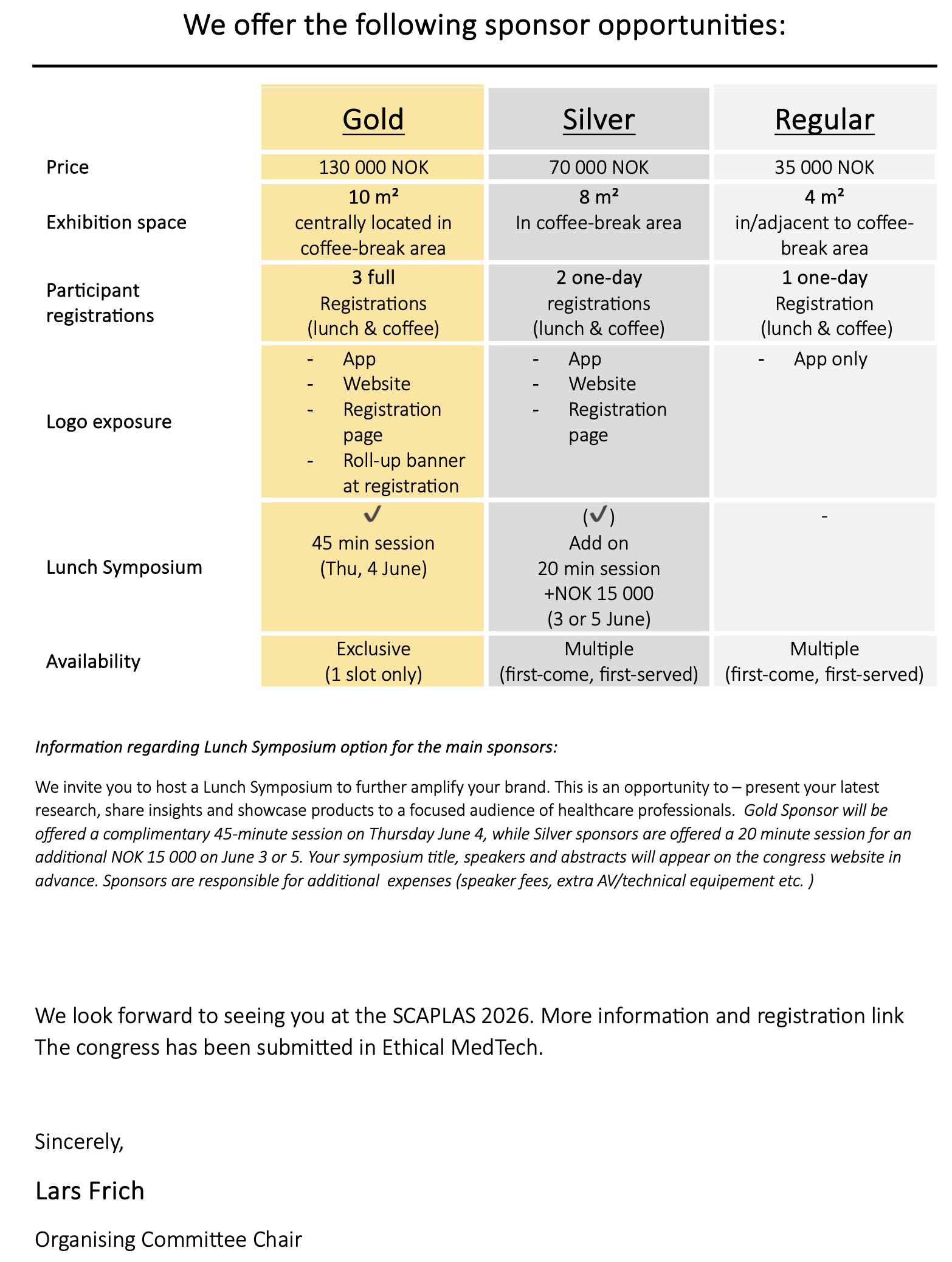 participate as a sponsor at the SCAPLAS Congress 2026, to be held 3-5 June at the Radisson